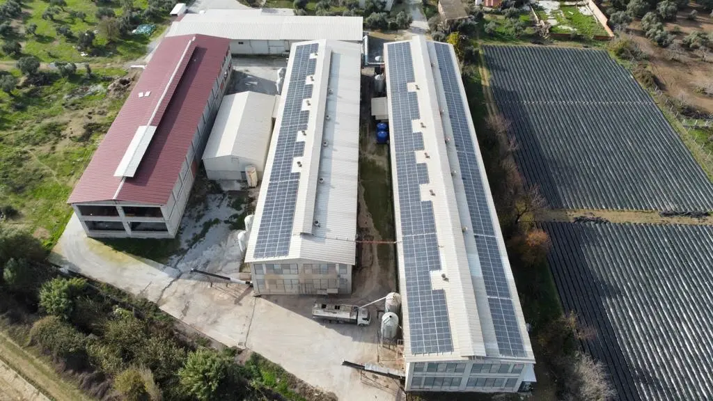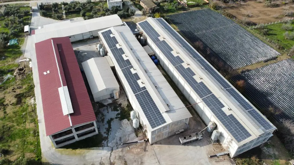 Aydın İncirliova’da faaliyet göstermekte olan Özyiğitbey Hayvancılık’a ait tesislerin öz tüketimini karşılamak üzere fabrika çatısına kurduğumuz 286 kWp – 240 kWe gücündeki paneller ve 2 adet 110 kW, 1 adet 33 kW inverter kullanılarak GES santrali kurulmuştur.