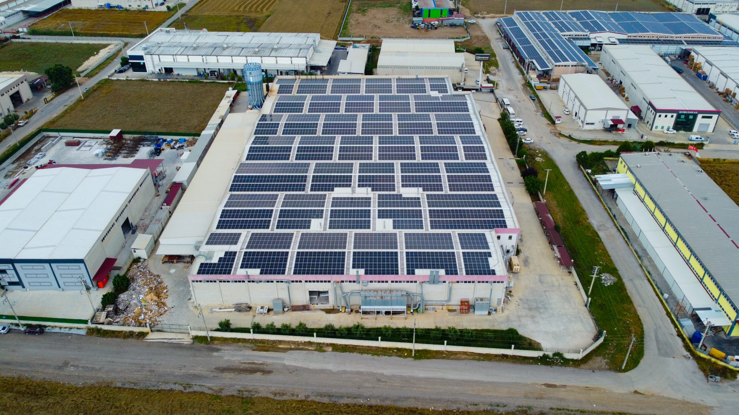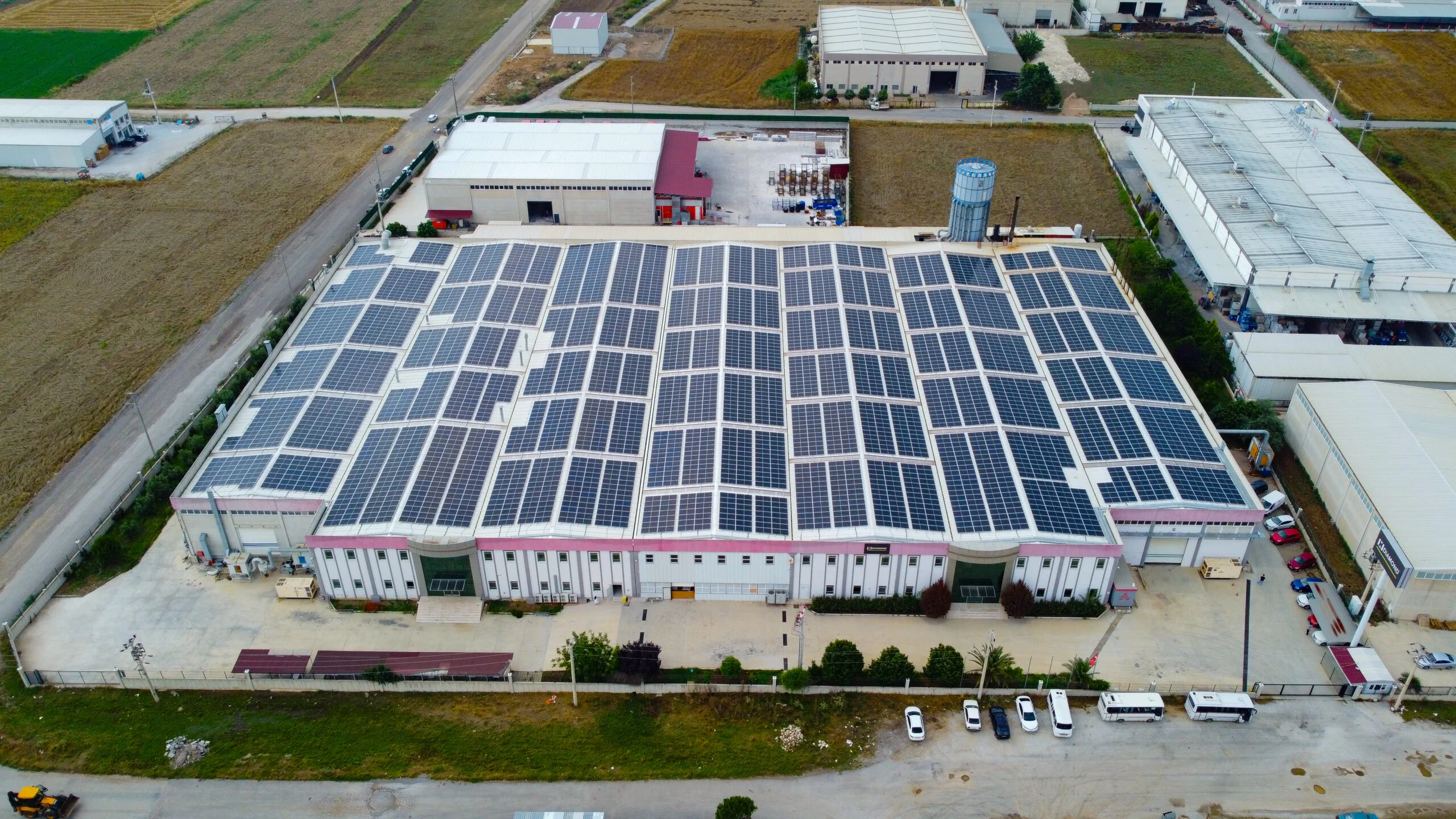 Yatırımcımız Diamond Door’a ait fabrika çatısına, toplamda 3626 adet 455 Wp gücünde panel ve 11 adet 110 kW inverter kullanarak 1649,83 kWp / 1200 kWe güce ulaşan güneş enerjisi santrali kurulumunu, mühendislerimiz ve saha ekibimizin özverili ve titiz çalışmaları ile başarıyla tamamladık. Yetkililerin nezdinde yapılan kontroller sonucunda, profesyonel işçiliğimiz onaylanmış ve güneş enerjisi santrali 03.05.2023 tarihinde kabul edilerek devreye alınmıştır.